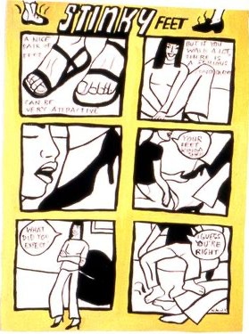 This exhibition also at Propeller was again two one person shows. Keijo Tapanainen also did work about the body but in collage form where I did painted comic strips. Each of my paintings was a short story about a different part of the body. For example there was one story about lips: my first kiss. There was another about skin: a day at the beach. I had a lot of fun with this show and it was very successful for me, i.e. I sold and traded a number of pieces. Yay!