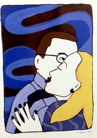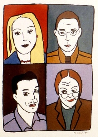 In 1999, I had a show with Linda DeLuca. Linda is a friend from art school who is also a working artist. She presented a body of work from her experience teaching ESL in South Korea, and I presented small gouache paintings of the characters in my photo romance. I also sold the zine format of my photo romance to accompany the paintings. As a first show it was a very exciting and positive experience.